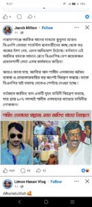 জ্যাকব মিল্টনের সেই লেখাটিতে অনেকেই অনেকভাবে কমেন্টস করেছেন তার মত করে। সদ্য ওমরা হজে¦ যাওয়া জাকির খানের একটি ছবি সম্বলিত করে একজন লিখেছেন যে চাদাঁবাজির টাকায় ওমরাহ! যার স্কিনশর্টটি হুবুহু দেওয়া হলো।