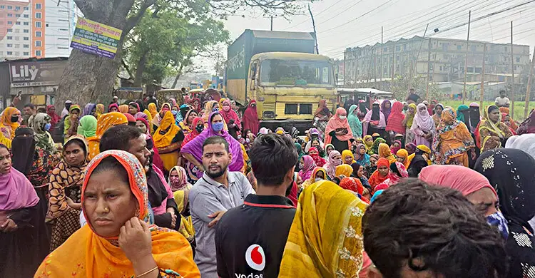 ফতুল্লায় বকেয়া বেতনের দাবিতে শ্রমিকদের সড়ক অবরোধ