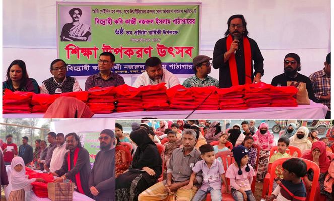 কবি কাজী নজরুল পাঠাগারের প্রতিষ্ঠা বার্ষিকী উপলক্ষে শিক্ষা উপকরণ বিতরন