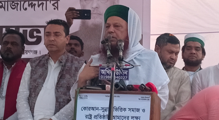 সমাবেশে প্রধান অতিথির বক্তব্যে আল্লামা সৈয়দ বাহাদুর শাহ্ মোজাদ্দেদী বলেন, “আমরা শান্তির রাজনীতিতে বিশ্বাসী। সুফিবাদী আদর্শ ও মুক্তিযুদ্ধের চেতনাকে ধারণ করে আমরা একটি বৈষম্যহীন সমাজ গঠন করতে চাই। নারায়ণগঞ্জ-৫ আসনের মানুষের দীর্ঘদিনের বঞ্চনা দূর করতে এবং সন্ত্রাস-চাঁদাবাজমুক্ত এক আধুনিক ও শান্তিময় জনপদ গড়তে আগামী নির্বাচনে ‘চেয়ার’ প্রতীকে ভোট দিয়ে আপনাদের সেবা করার সুযোগ দিন।”