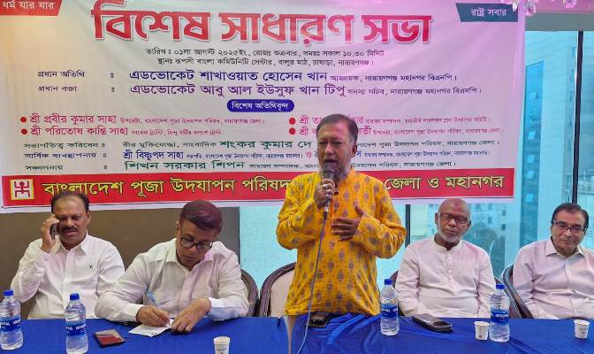 বাংলাদেশ পূজা উদযাপন পরিষদ নারায়ণগঞ্জ জেলা ও মহানগর কমিটির বিশেষ সাধারণ সভায় প্রধান বক্তার বক্তব্যে তিনি এসব কথাগুলো বলেন।