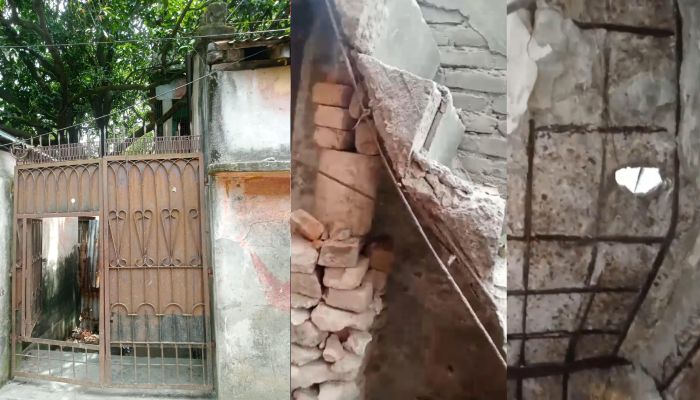 বন্দর প্রতিনিধি: ছাদ ও দেওয়ালে ধরছে ফাটল। অধিকাংশ স্থানে খসে পড়ছে পলেস্তারা। বেড়িয়ে পড়েছে রড, সামান্য বৃষ্টিতেই ফাটল ধরা ছাদ থেকে পড়ছে পানি। খসে পড়ছে পোকায় ওখেয়ে নষ্ট করা দরজা-জানালা সহ অন্যান্য উপকরণ। বাঁশ আর কাঠের খুঁটিতে ঠেস দিয়ে রাখা হয়েছে সিঁড়ি ও ছাদ। আশঙ্কা, যেকোনো সময় ঘটতে পারে দুর্ঘটনা। এ অবস্থায় ঝুঁকি নিয়েই জরাজীর্ণ […]