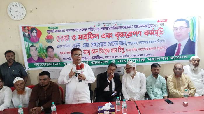 জুলাই আগস্টে আন্দোলনে সকল শহীদদের রুহের মাগফিরাত কামনা ও আহতদের সুস্থ্যতার জন্য বন্দর থানা ছাত্রদল ও নারায়ণগঞ্জ মহানগর ছাত্রদলের আয়োজনে মঙ্গলবার দুপুরে বন্দরের মদনপুর ইউনিয়নের বাগদোবাড়িয়ায় নাগিনা জোহা উচ্চ বিদ্যালয় প্রাঙ্গণে দোয়া মাহফিল এবং বৃক্ষরোপণ কর্মসূচি পালিত হয়েছে। উক্ত কর্মসূচিতে প্রধান অতিথির বক্তব্যে নারায়ণগঞ্জ মহানগর বিএনপির আহবায়ক এ্যাড. মোঃ সাখাওয়াত হোসেন খান বলেন, ‘প্রিয় […]