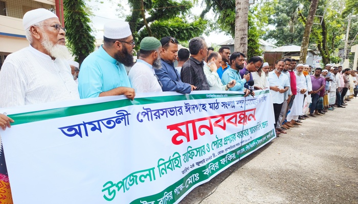 আমতলীতে পৌর গোরস্থান করার দাবীতে মানবন্ধন কর্মসূচী পালিত