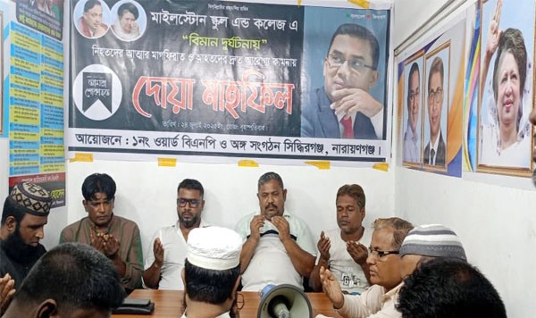 মাইলস্টোন ট্র্যাজেডি: সিদ্ধিরগঞ্জে নিহতদের মাগফিরাত ও আহতদের দ্রুত সুস্থ্যতা কামনা দোয়া
