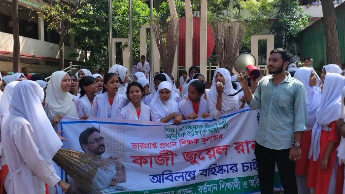কুতুবপুরে প্রধান শিক্ষকের বহিষ্কার চেয়ে শিক্ষার্থীদের ঝাড়ু মিছিল