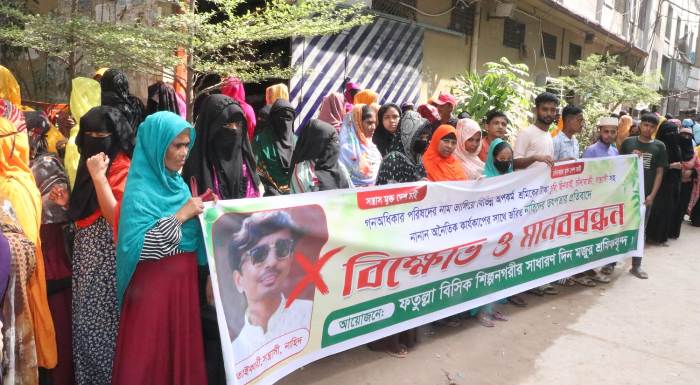 ফতুল্লা বিসিকে চুরি ছিনতাই চাঁদাবাজি বন্ধের দাবীতে শ্রমিকদের মানববন্ধন