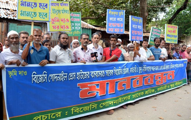 সিদ্ধিরগঞ্জে বিজেসির সাবেক শ্রমিক-কর্মচারীদের পূনর্বাসনের দাবিতে মানববন্ধন