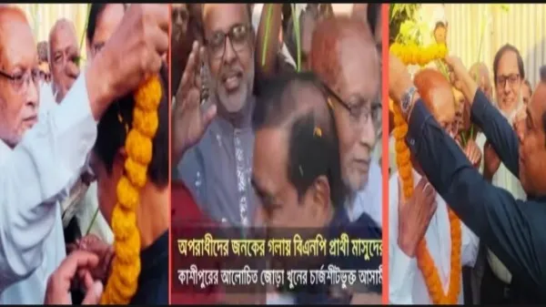 জোড়া খুনের চার্জশিটভুক্ত আসামির গলায় মাসুদের ফুল দিয়ে মালাবদল!
