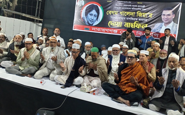 সিদ্ধিরগঞ্জে খালেদা জিয়ার বিদেহী আত্মার মাগফিরাত কামনায় কৃষকদলের দোয়া