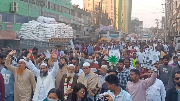 ফতুল্লায় খেজুরগাছ প্রতিকে ভোট চেয়ে রিয়াদ চৌধুরীর বিশাল মিছিল!